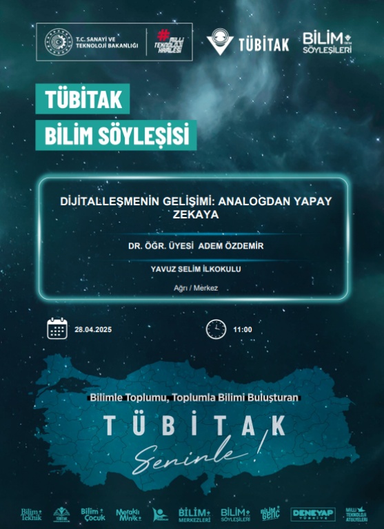 TÜBİTAK BİLİM SÖYLEŞİLERİ KAPSAMINDA OKULUMUZ 4. SINIF ÖĞRENCİLERİNE YÖNELİK "DİJİTALLEŞMENİN GELİŞİMİ: ANALOGDAN YAPAY ZEKAYA" KONULU SÖYLEŞİ GERÇEKLEŞTİRİLDİ.